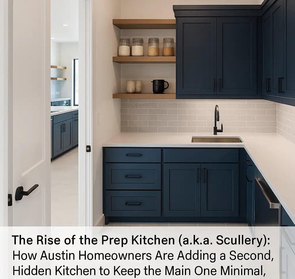 At Trend Kitchen + Bath, we’re seeing a sharp rise in requests for sculleries all over Austin, Cedar Park, Leander, Georgetown, and West Lake Hills. In this guide, we’ll walk you through what a prep kitchen is, why it’s exploding in popularity, how to plan one (even if you don’t think you have space), what it costs, and the smartest way to integrate cabinetry, appliances, plumbing, lighting, and ventilation. When you’re ready, our design team can turn the awkward alcove, old laundry room, or oversized pantry into the hardest‑working square footage in your home.